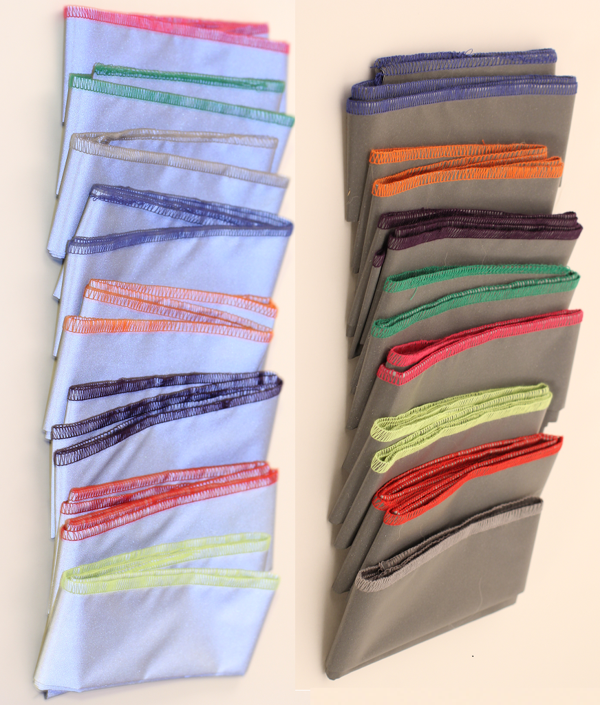 The leash cover is sewn from a highly reflective technical fabric. Each leash cover only weighs 35 grams (1.2 ounces) and is a generous 1.3 meters (4.2 feet) long. Reflective all around for a total of 7.5 centimeters (3 inches) of visibility. Available in a variety of thread colours.